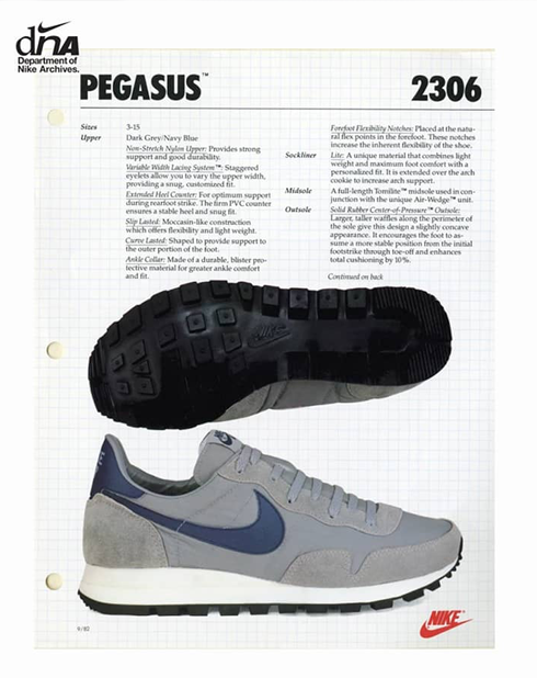 V průběhu 70. let si Nike vybudovala reputaci výrobce vysoce kvalitní sportovní obuvi, zejména pro běžce. Velká část úspěchu značky byla založena na inovativním spoluzakladateli Billu Bowermanovi, jehož odhodlání pomohlo atletickému týmu University of Oregon stát se jedním z nejlepších během jeho 24letého působení jako hlavní trenér. Odstoupení z této pozice v roce 1972 mu umožnilo věnovat více času navrhování obuvi a v následujících letech Bowerman využil své bohaté trenérské zkušenosti k vytvoření vynikajících výkonnostních tréninkových bot, jako jsou Cortez, Waffle Racer a LD-1000, a připravil tak půdu pro jednu z nejúspěšnějších řad běžeckých bot všech dob – Nike Pegasus.